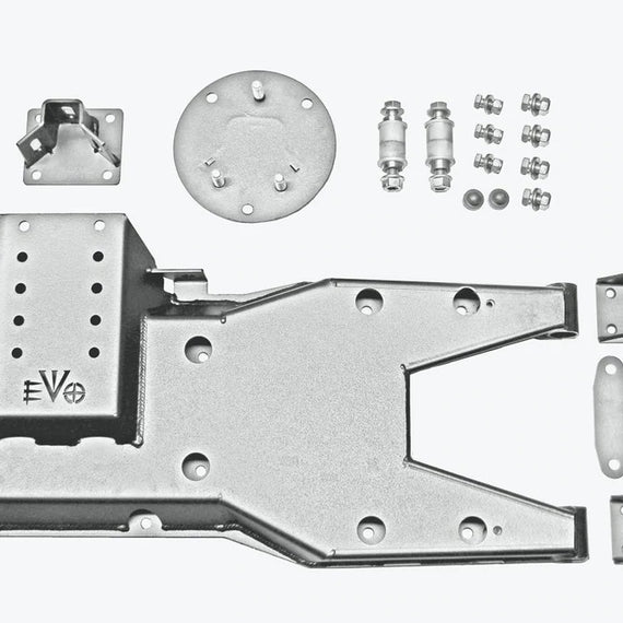 The tire mounting position is engineered to be adjustable in movement up and down as well as in and out. This ensures your tire will fit properly, won’t rattle, and gives you departure angle and rear window visibility options. The EVO MFG Gate Carrier includes an integrated antenna mount and is compatible with EVO-1120 Jack mount and EVO-1163 Gas Can or License Plate Relocate mount to allow you to carry your jack and extra water or fuel on the trail. Install is simple and can be done with a basic tool set by any installer. It’s all bolt on with no drilling or cutting needed.