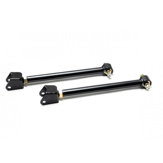 The JK factory control arms have proven themselves to be well made and will articulate quite far, they due have some drawbacks, lack adjustability and are known to eventually fail or bend under hard wheeling and time. The EVO MFG Enforcer front upper arms address this by being made from heavy wall DOM Steel Tubing, are all fully adjustable in length for fine tuning of suspension alignments and wheel positions. They utilize Currie Johnny Joints at the frame side of each control arm which are free moving joints with ample misalignment and angle, rebuildable and greaseable and do not give the resisantance and misalignment wear charactoristics of all bonded rubber. They offer a isolated construction for decreased transmission of road vibrations without the wear or binding associated with bonded rubber joints.