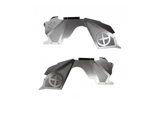 The EVO MFG JK Front Vented Inner Fenders are made from 16 Gauge 5052 aluminum alloy for a light weight addition and strong construction. They come in raw aluminum finish and can be installed as is or painted and/or powdercoated a single color or a 2 tone of your choice. This great addition to your JK works on all years and models and with stock and aftermarket, plastic, steel or aluminum fenders. They are simple to install with standard tools and come complete with both front driver and passenger side inner fenders and stainless steel hardware.
