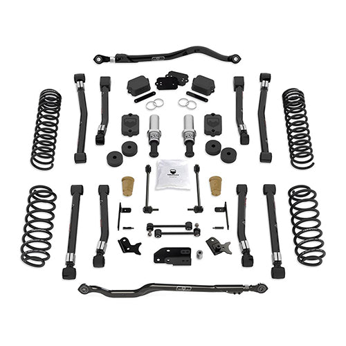 This results in improved suspension geometry and relaxed control arm angles for a superior ride quality and performance regardless of terrain. These systems restore front and rear roll axis angles to minimize brake dive and acceleration squat. TeraFlex suspension systems provide reduced noise, vibration, and harshness (NVH).