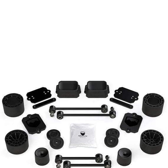 The TeraFlex JL 4dr Sport/Sahara: 2.5” Performance Spacer Lift Kit is the most economical way to fit larger tires and increase ground clearance on your JL Wrangler Unlimited Sport or Sahara with the least amount of modifications.