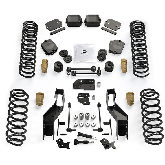 This results in a simple “install and drive” bolt-on installation with no cutting or welding required. These maintenance-free suspension systems provide superior on-road ride quality and comfort with maximum off-road flex. TeraFlex suspension systems provide reduced noise, vibration, and harshness (NVH).