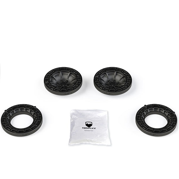 The TeraFlex JL/JLU: 0.5” Spacer Load Leveling Kit provides additional height to help compensate for heavier aftermarket gear such as bumpers, a winch, a larger spare tire, or weekend swag. Can use only front, only rear, or all four spacers.