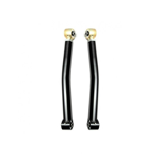 EVO MFG JL/JT Enforcer Front Lower Control Arms are made of 1.75” OD x .313 Wall DOM Tubing. Johnny Joints on both ends of each arm allow for maximum articulation without the bind and spring rate of bonded rubber. Adjustable in length to allow for caster correction during alignments. Fully assembled and powdercoated black.