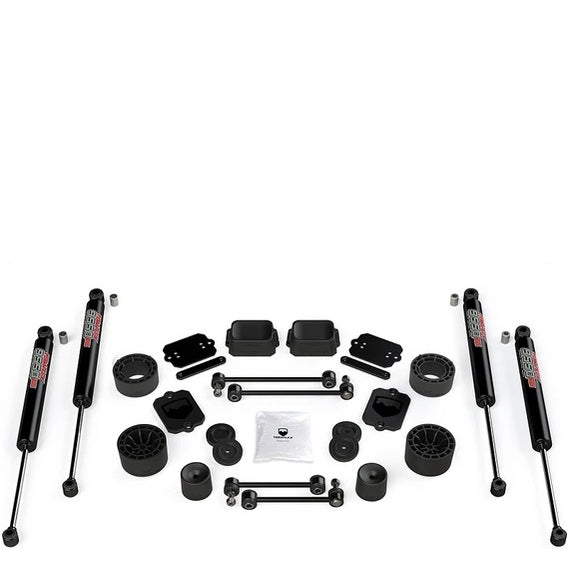 2.5” Performance Spacer Lift Kits are offered with TeraFlex 9550 VSS Twin-Tube Shocks, with shock extensions, or without shock absorbers or extensions.