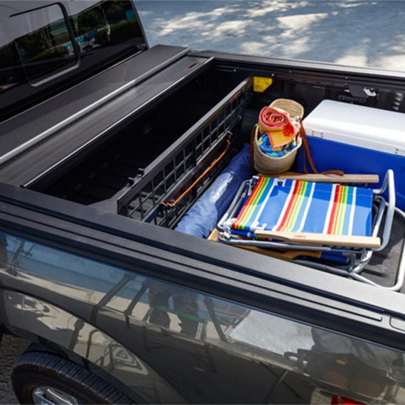 You work hard and appreciate the value of the things you've earned. When it comes to protecting your truck and gear, only the best will do. The top of the line E-Series retractable tonneau is the ultimate choice in truck bed cover convenience and security. Proving itself every day on the road and on the job, the E-Series tonneau cover is trusted by truck owners around the world for its premium, American-made quality, versatility, and craftsmanship. With the push of a button, a commercial-grade electric motor automatically opens and closes the tonneau cover, allowing fast and easy access to the contents of your truck bed. A powder-coated aluminum cover body provides a rugged surface that can withstand even the toughest of environments. And, just like its M-Series and A-Series counterparts, the E-Series' tonneau cover permits opening or closing in seconds, with one very important upgrade: the ultra-convenient key fob. We never compromise ? and neither should you. Roll-N-Lock's E-Series tonneau cover outlasts and outperforms the competition due to the high quality of its tough, powder-coated aluminum construction and unique, theft-resistant hinge design. With its never-before-seen level of truck bed security and rugged commercial motor, this is the cover to beat all covers. The convenient key fob operation keeps things moving on the job, and the cover's pressure sensitive stop protects valuable cargo at every turn.