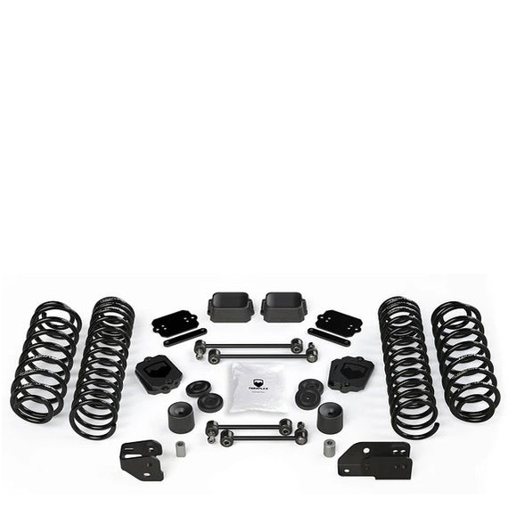 The TeraFlex JL 2dr: 3.5” Coil Spring Base Lift Kit includes just the basic lift components only and doesn’t have the drivability of a full suspension system. Requires front control arm Sport Brackets, or longer front lower control arms, or adjustable control arms, and/or an adjustable front track bar to correct suspension geometry.