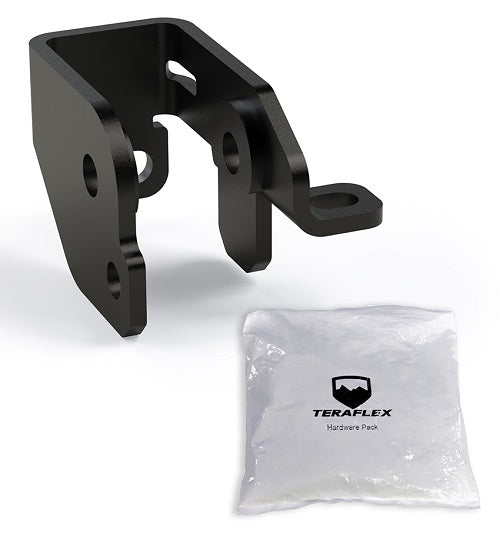 The TeraFlex JL/JLU: Rear Track Bar Axle Bracket Kit corrects vehicle roll center, restores factory handling, and reduces body roll in lifted JL/JLU Wrangler models. Multiple mounting locations allows neutral lateral alignment of the rear axle on JL/JLU models with 2.5-4.5” lifts. Bolt-on bracket mounts to the rear axle.