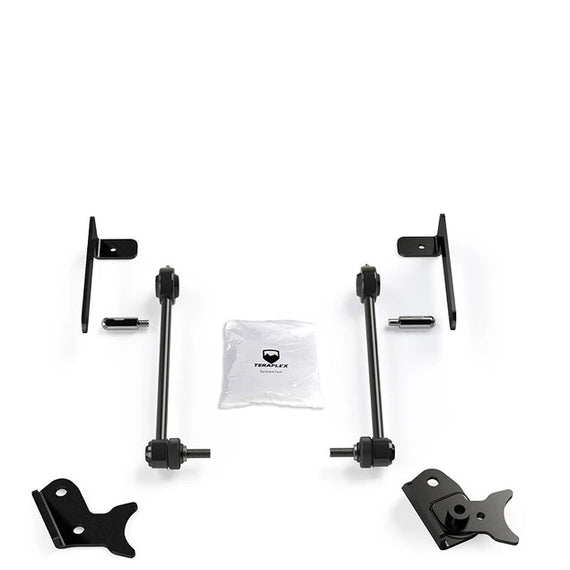 TeraFlex Front Sway Bar Quick Disconnects are the industry leader thanks to their ease of use. The Sway Bar Links quickly disconnect and swing up out of the way for unrestricted axle articulation during off-roading. While connected for street use, the link provides immediate reaction during sway bar loading to eliminate excess play. This results in improved lateral control and steering response compared to the stock rubber sway bar link bushings.