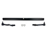 A direct replacement extreme duty Tie Rod assembly to replace your underperforming OE steering. Oversized tie rod ends, connected by a massive DOM, Polished Aluminum or Black Aluminum adjusting sleeves, eliminates death wobble and tightens up steering under the most extreme conditions. Weak adjusting sleeves are replaced via tie rod and drag link ends threading directly into the connecting rods and secured by:
