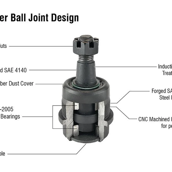 Lower: Polished Ball Studs:Are built like an anti-friction bearing with extremely precise tolerances.