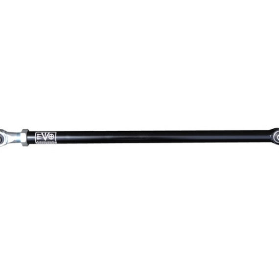 The EVO MFG Jeep Gladiator JT Enforcer Adjustable Rear Trackbar is made of extremely thick DOM Steel Tubing utilizing a combination of a rubber bushing one end and spherical bearings. These give the fine tuning of axle center left to right and rigid strength to keep it that way. These maintain correct geometry and can be used with our without the use of raised rear trackbar bracketry aswell as all aftermarket rear axles. Come as one complete assembly powdercoated and zinc plated ready for install.