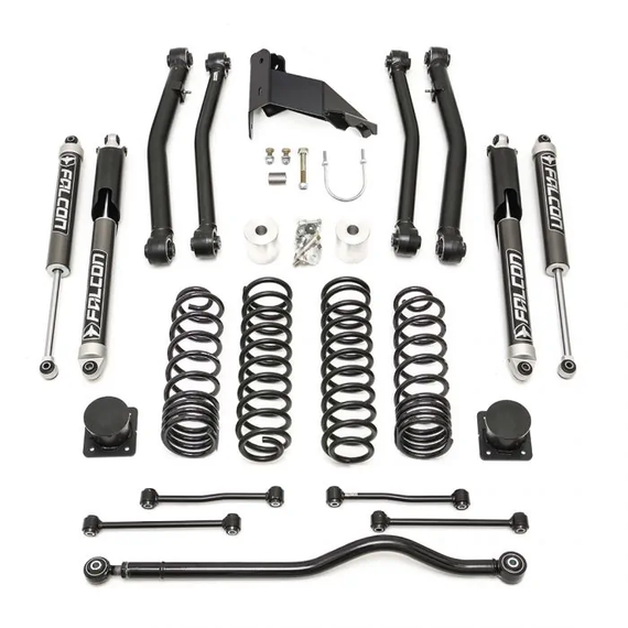 To finalize the ideal Terrain Flex Lift Kit, we have partnered with Falcon to include Falcon 2.1 mono tube performance shocks designed specifically for the JT Gladiator. When you combine all of our great ReadyLIFT suspension components with the Falcon 2.1 shocks, you get an outstanding 4" lift system that rides and drives better on road while providing incredible performance on the trails and rocks.