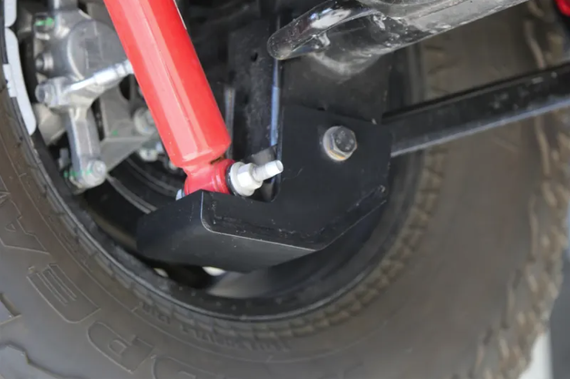 FRONT NOTE: Not compatible with alignment cam bolts. Not compatible with shock extensions. Not compatible with Teraflex long arm brackets.
