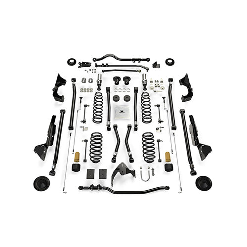 The TeraFlex 6” Alpine CT6 Long Arm Suspension System excels on the highway, off-road, through the desert, or rock crawling! The Alpine CT6 includes our HD Drag Link Flip Kit w/ Front Track Bar Drop Bracket & Frame Brace Kit to correct steering geometry, eliminate front end shimmy, and reinforce the frame. With its 6” lift coil springs and the ability to run a 38” tire with stock fender flares, the Alpine CT6 can conquer the toughest trails!