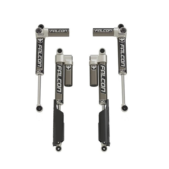 Falcon SP2 3.1 Piggyback Shocks deliver increased stability, improved ride quality, and comfort on road, while the increased compression damping provides more aggressive off-road handling. SP2 3.1 Shocks have been optimized for on- and off-road driving.