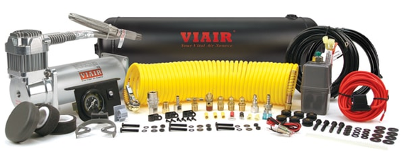 VIAIR’s Constant Duty Onboard Air System is a pre-packaged compressed air solution that provides a 100% duty cycle 450C compressor, 2.5 gallon air tank, and all components needed to install a working system capable of inflating tires. For up to 37" tires.
